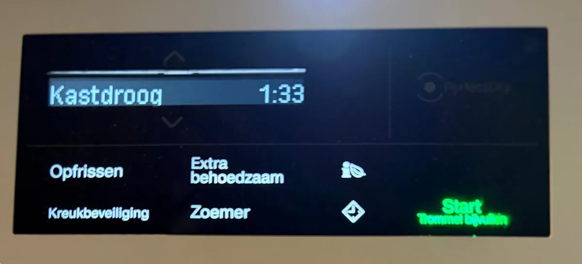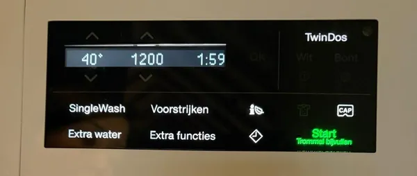 wasmachine starten door op start (groen op touchscreen) te drukken .