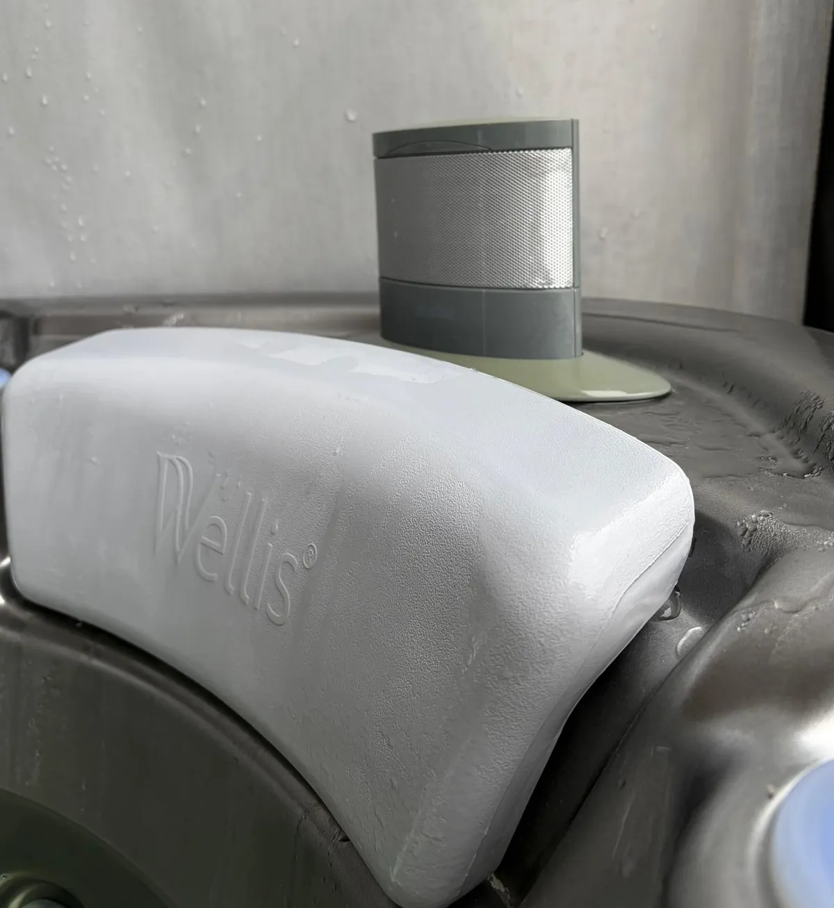 In twee hoeken van de jacuzzi zijn speakers ingebouwd.