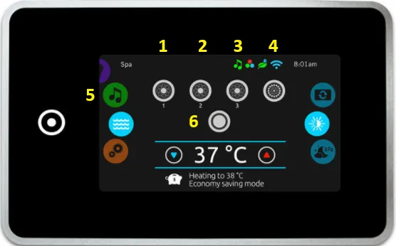 Bedien de whirlpool via het touchscreen: